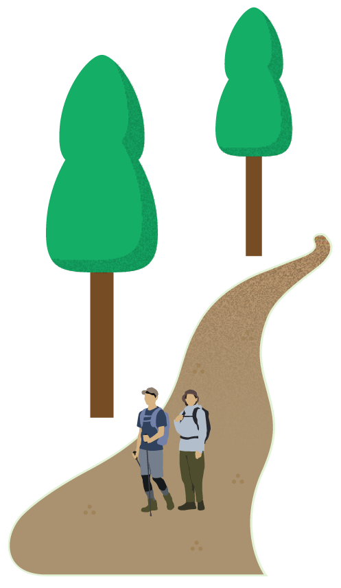 木々のある場所に人々が